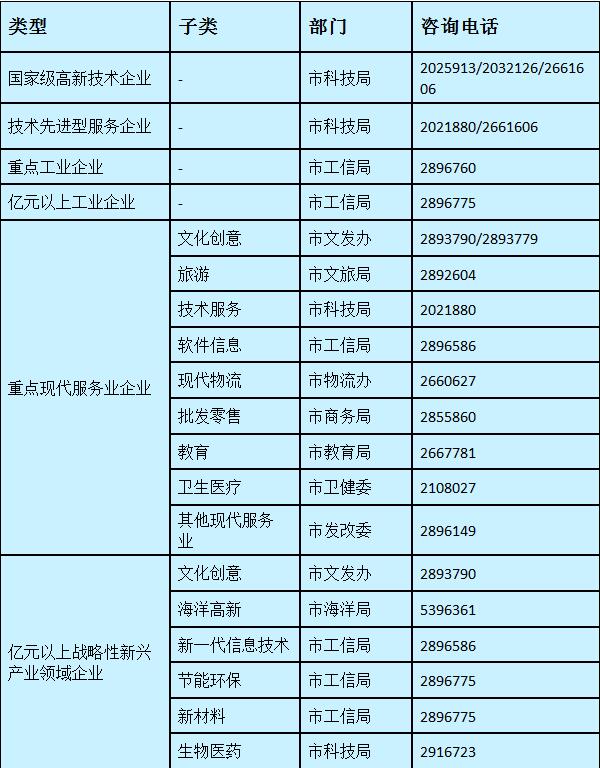 “三高”企业根据类别咨询对应部门的联系电话,具体如下: